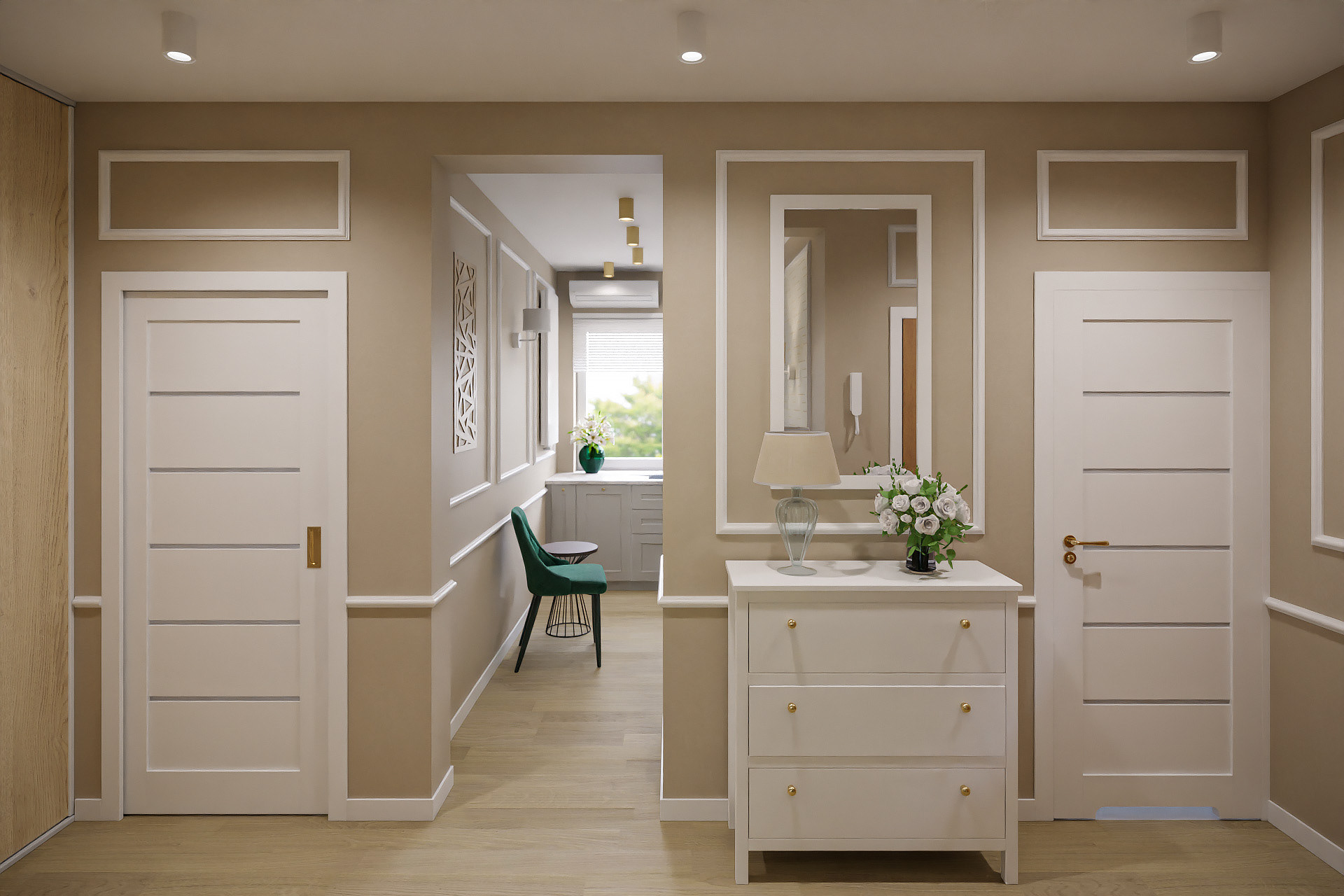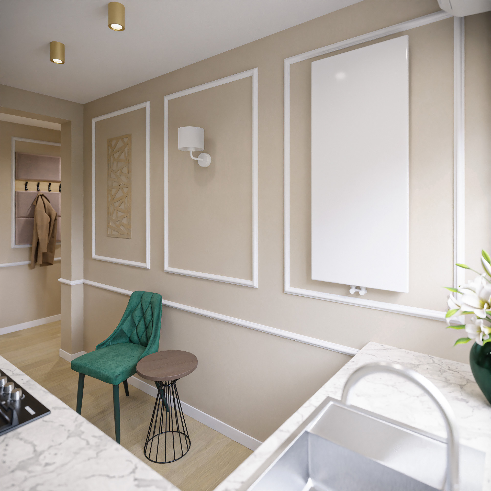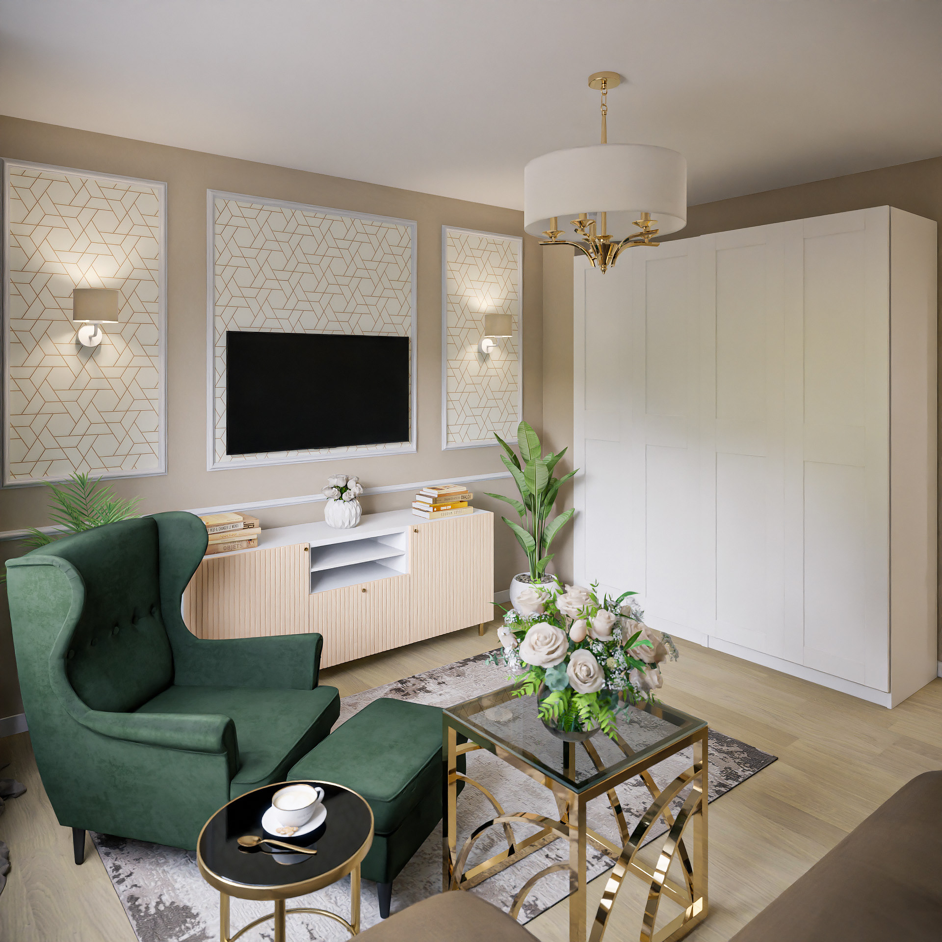 16 fotorealistycznych wizualizacji projektu wnętrz mieszkania w Gorzowie Wielkopolskim wykonanych dla Lara Studio.