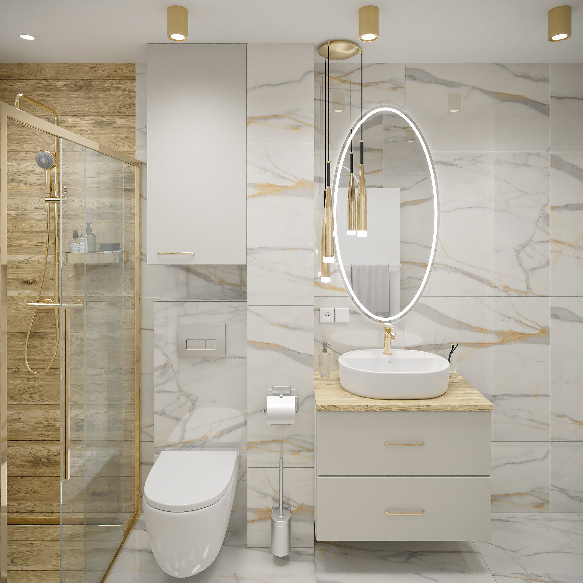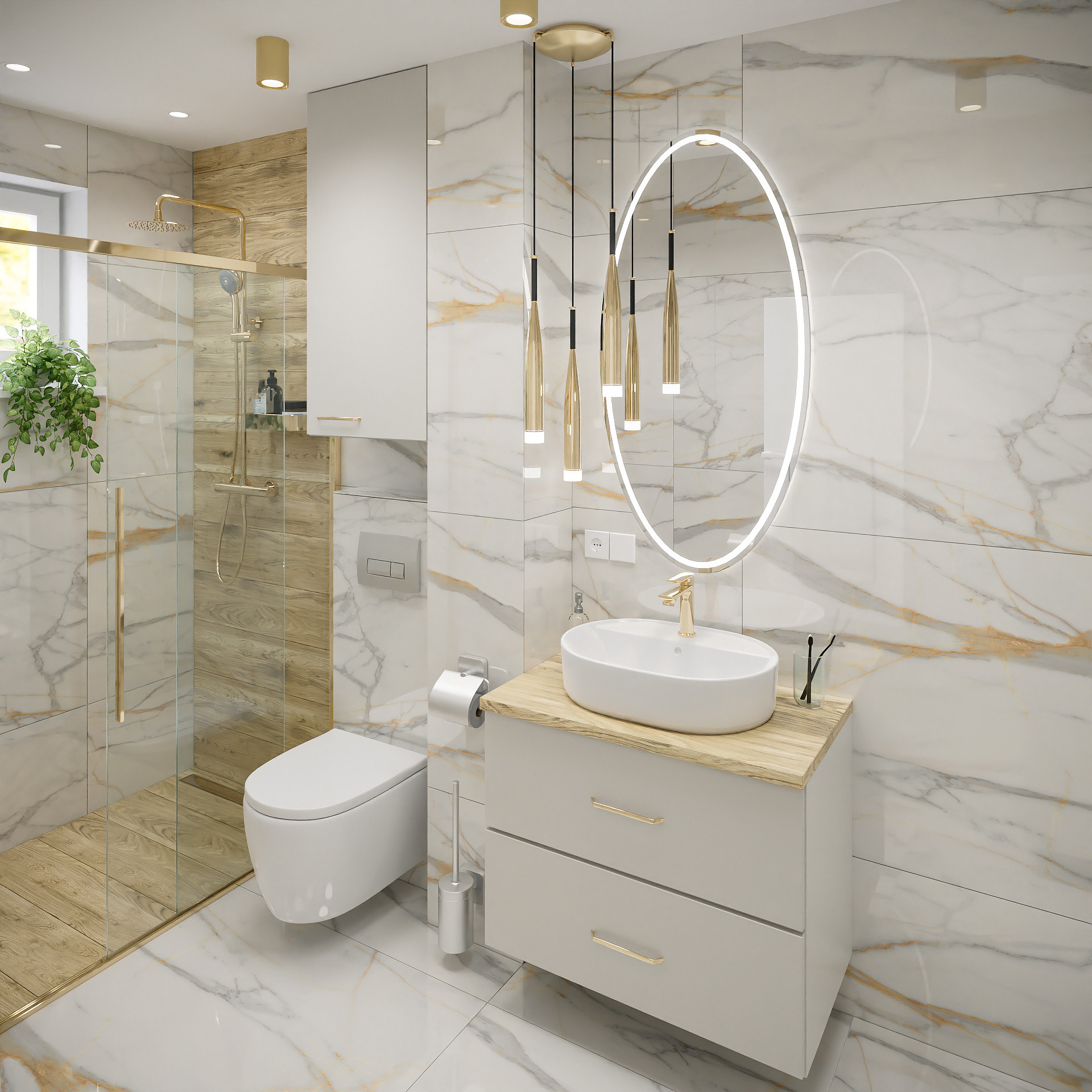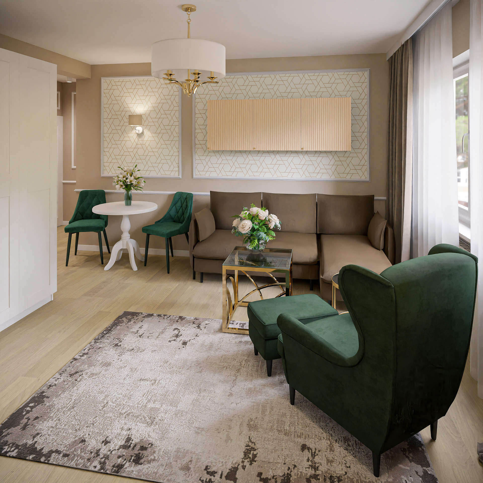 16 fotorealistycznych wizualizacji projektu wnętrz mieszkania w Gorzowie Wielkopolskim wykonanych dla Lara Studio.