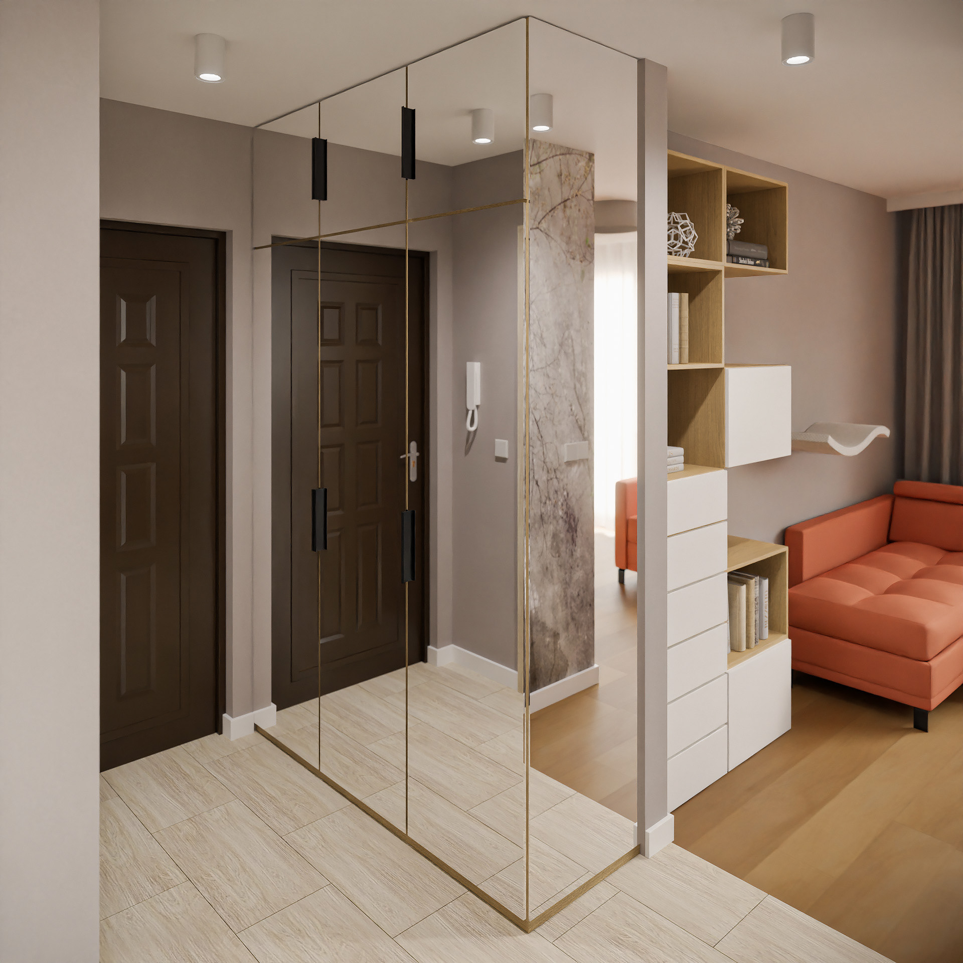 10 fotorealistycznych wizualizacji projektu wnętrz mieszkania w Gorzowie Wielkopolskim wykonanych dla Lara Studio.