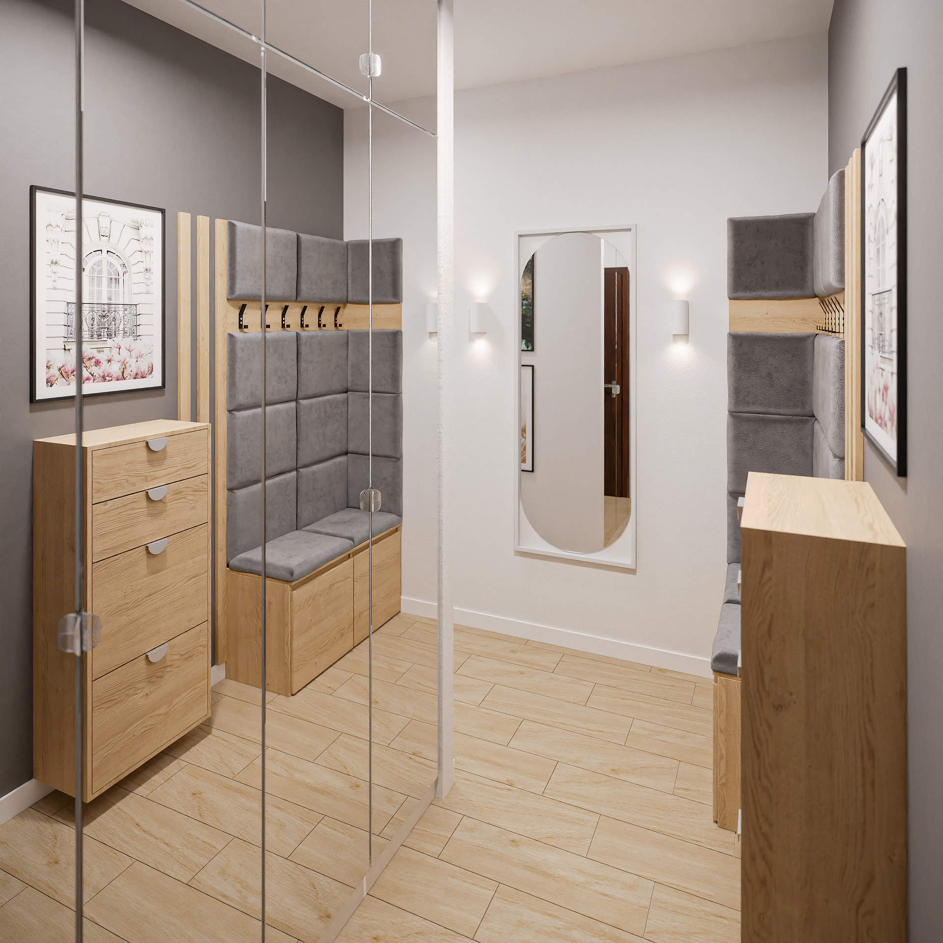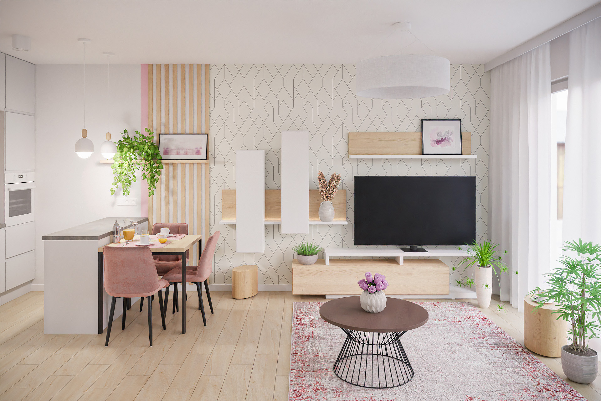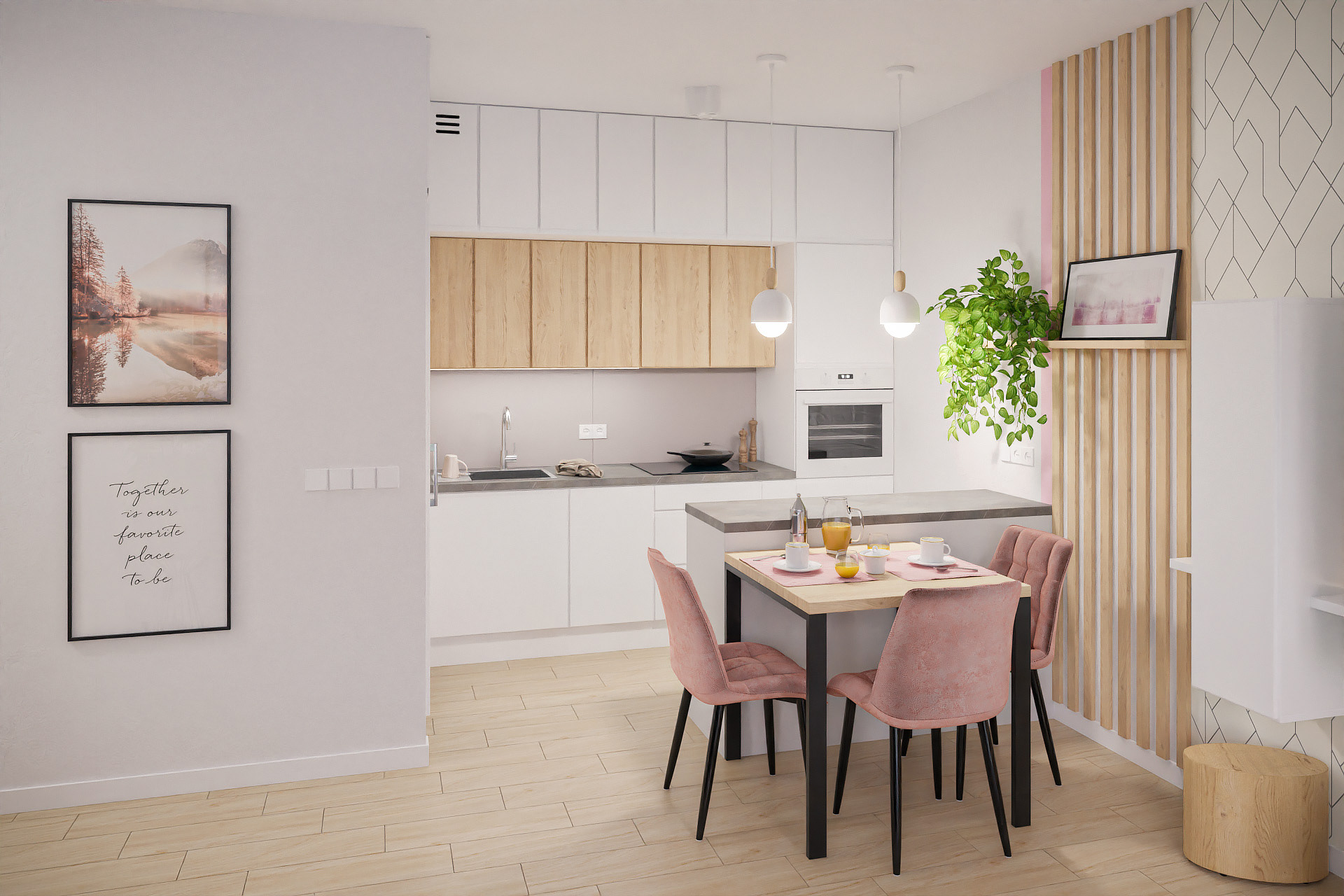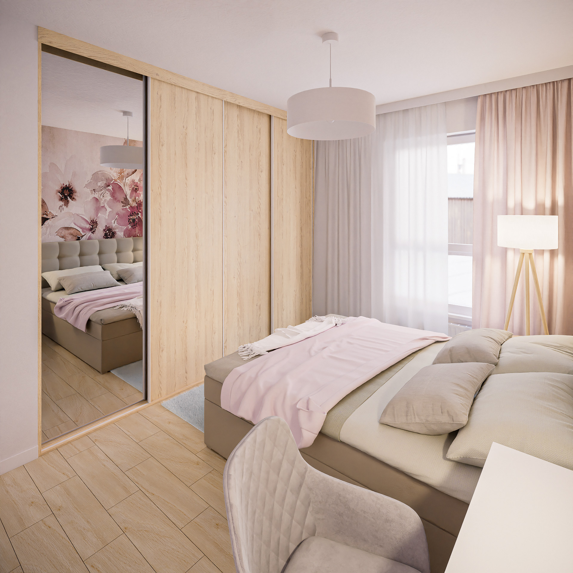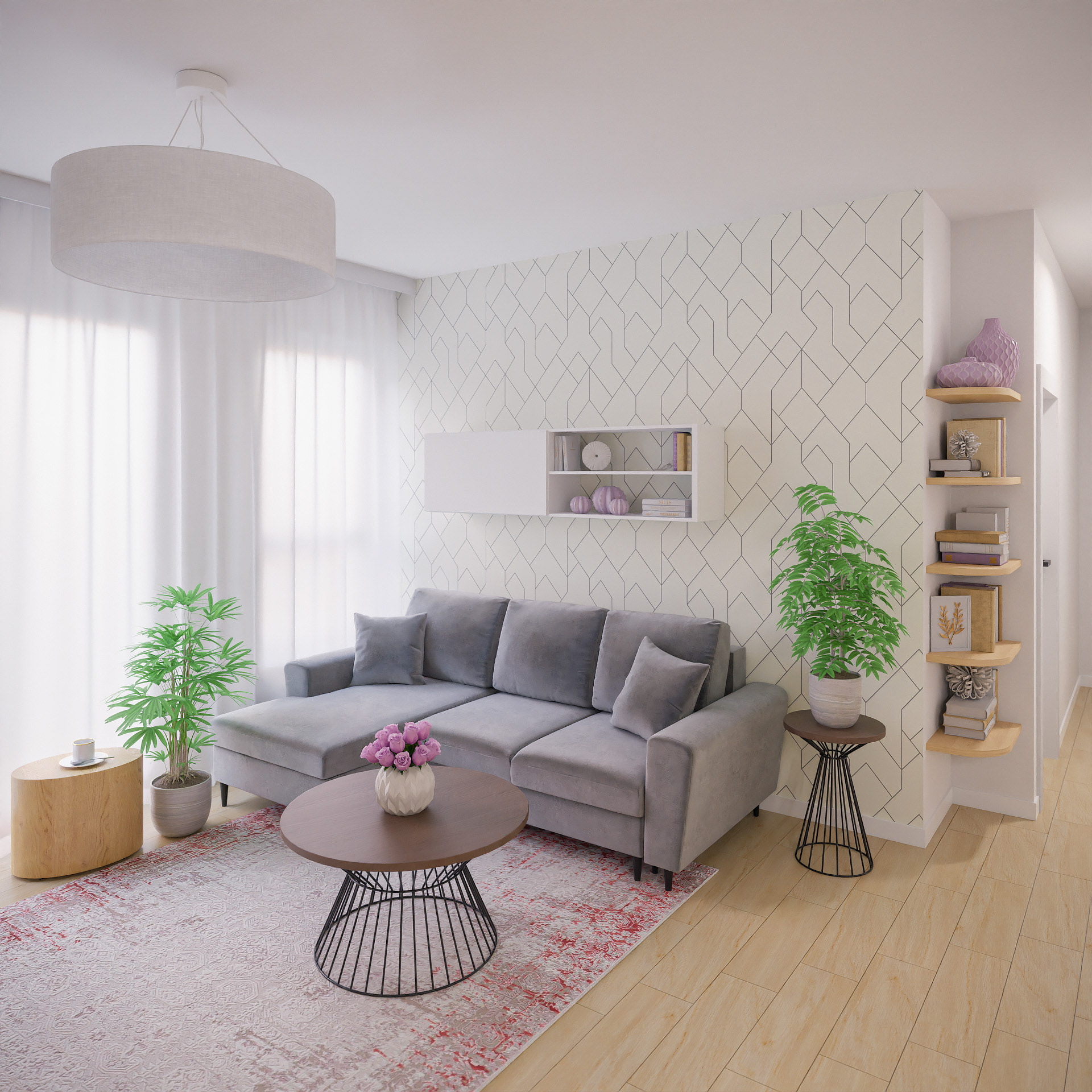 14 fotorealistycznych wizualizacji projektu wnętrz mieszkania w Siechnicach wykonanych dla Lara Studio.