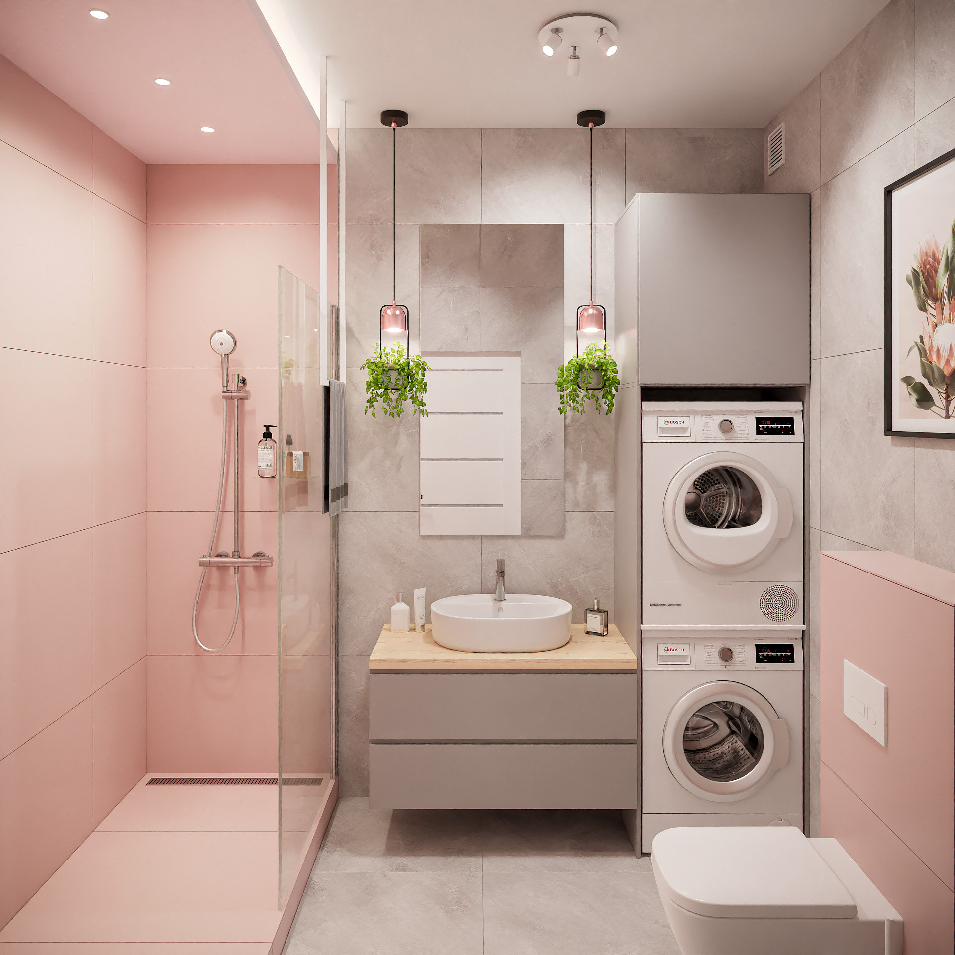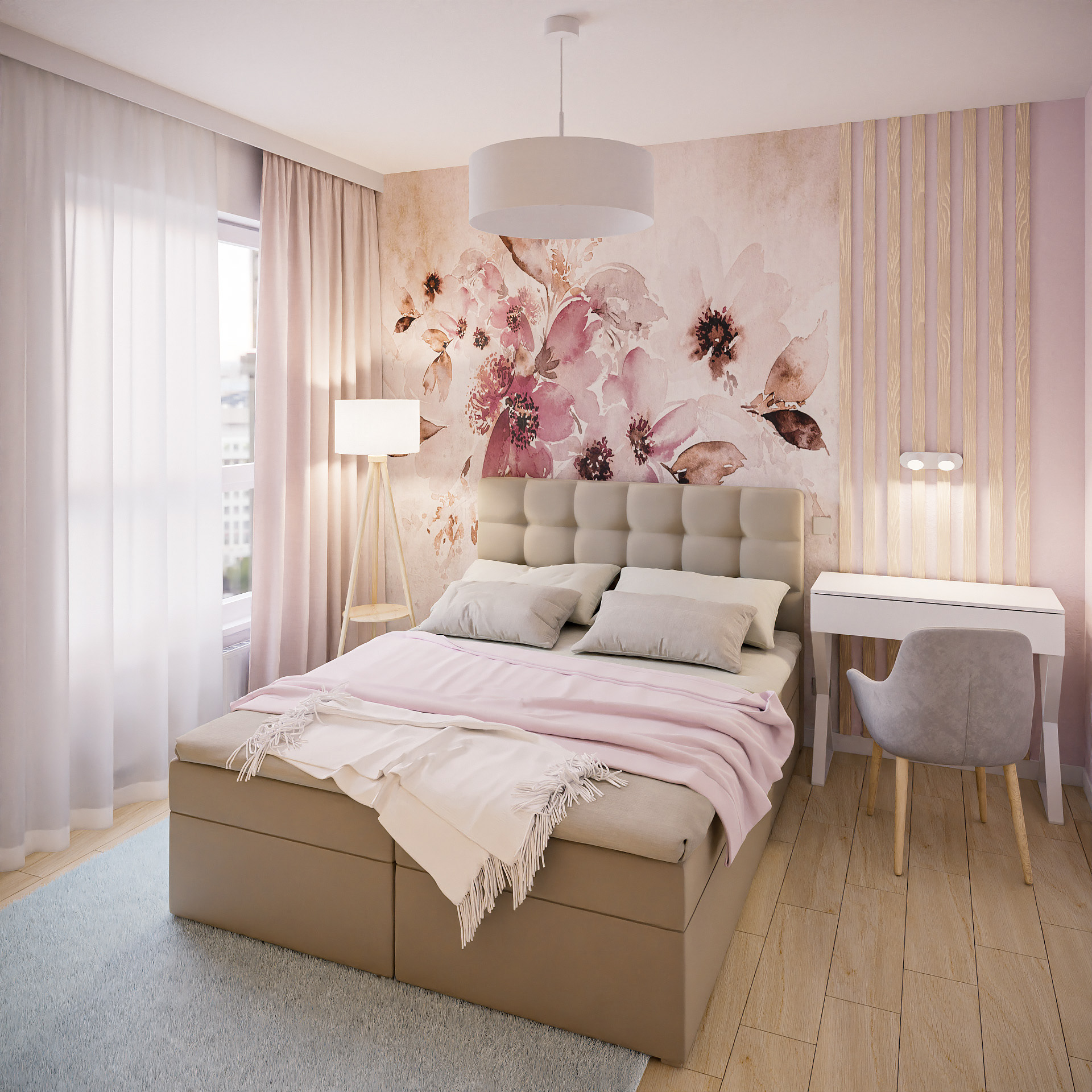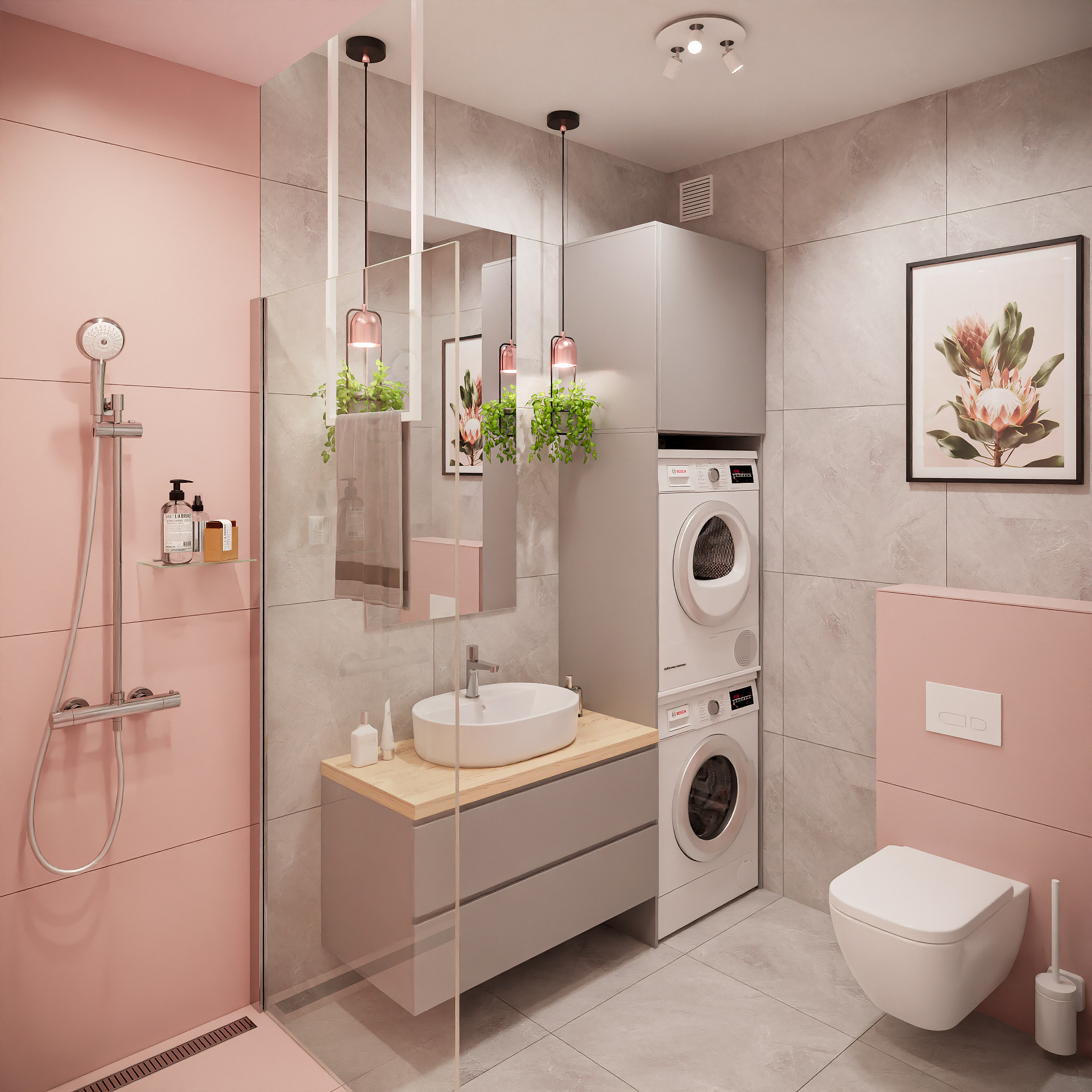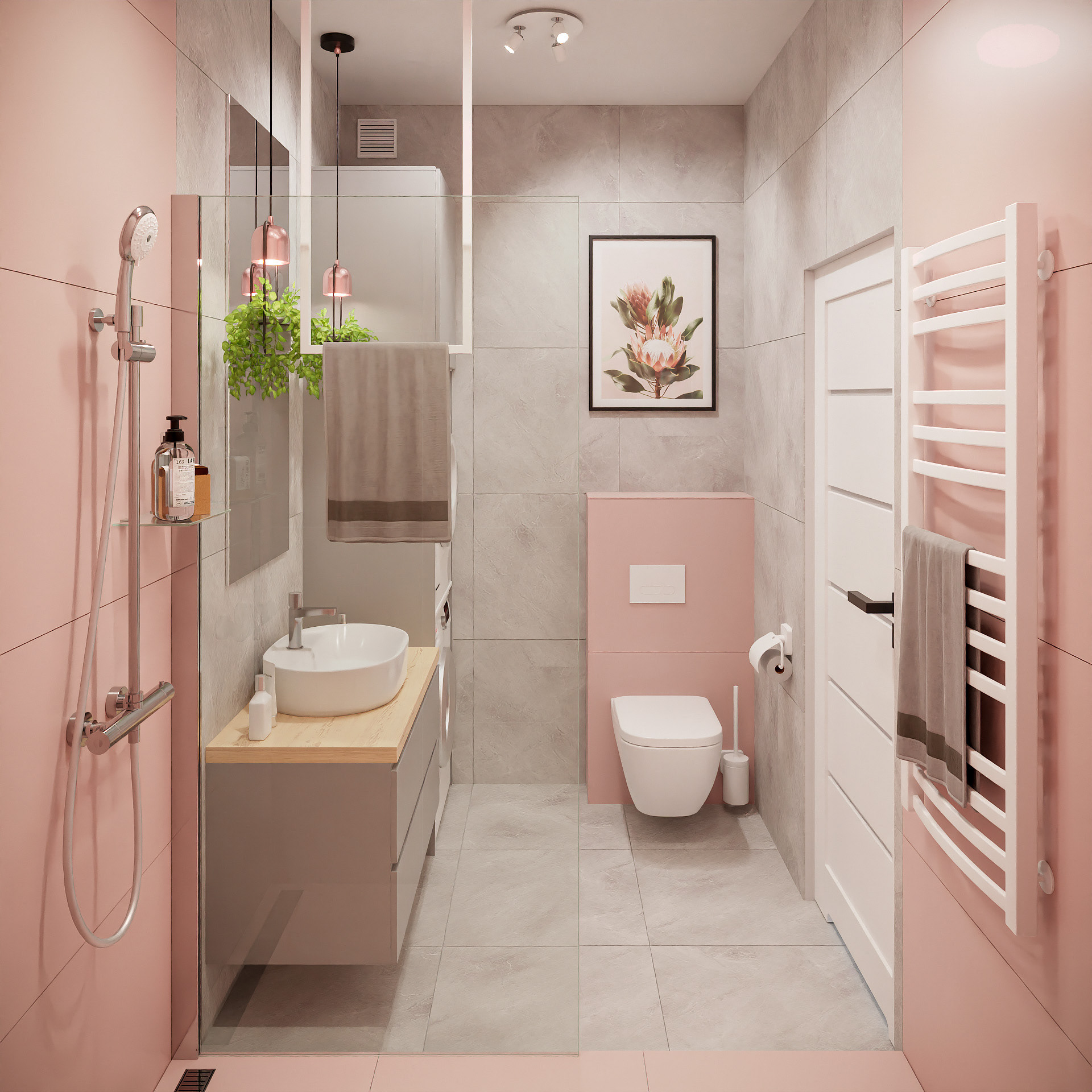 14 fotorealistycznych wizualizacji projektu wnętrz mieszkania w Siechnicach wykonanych dla Lara Studio.