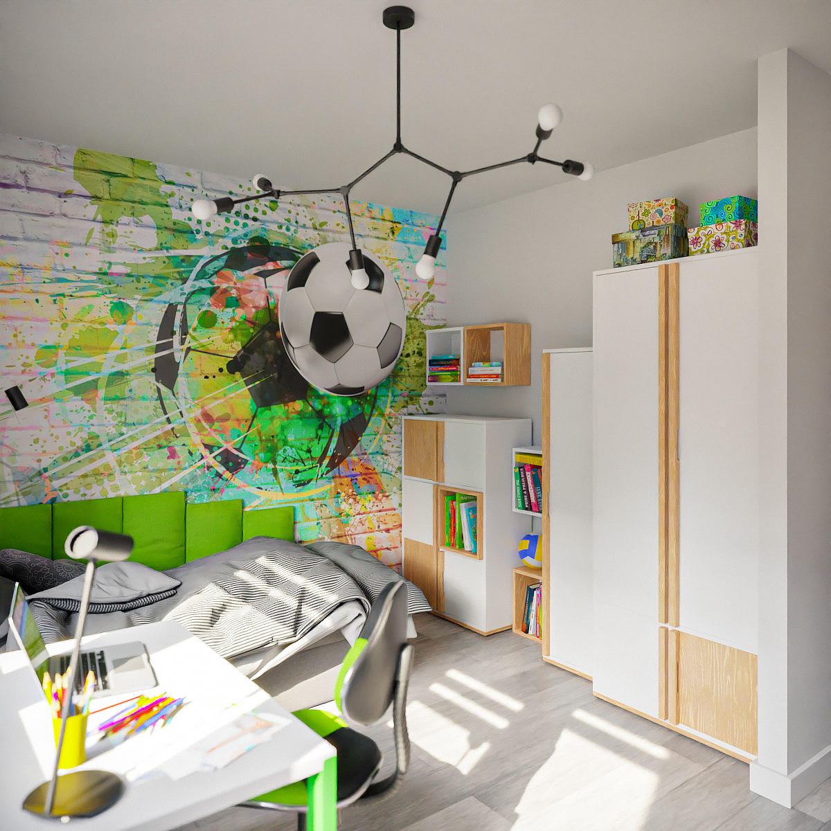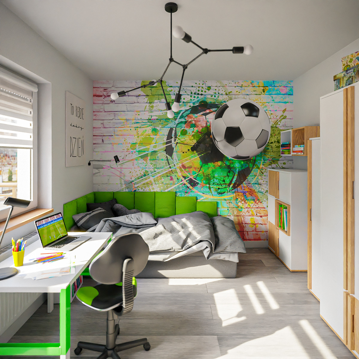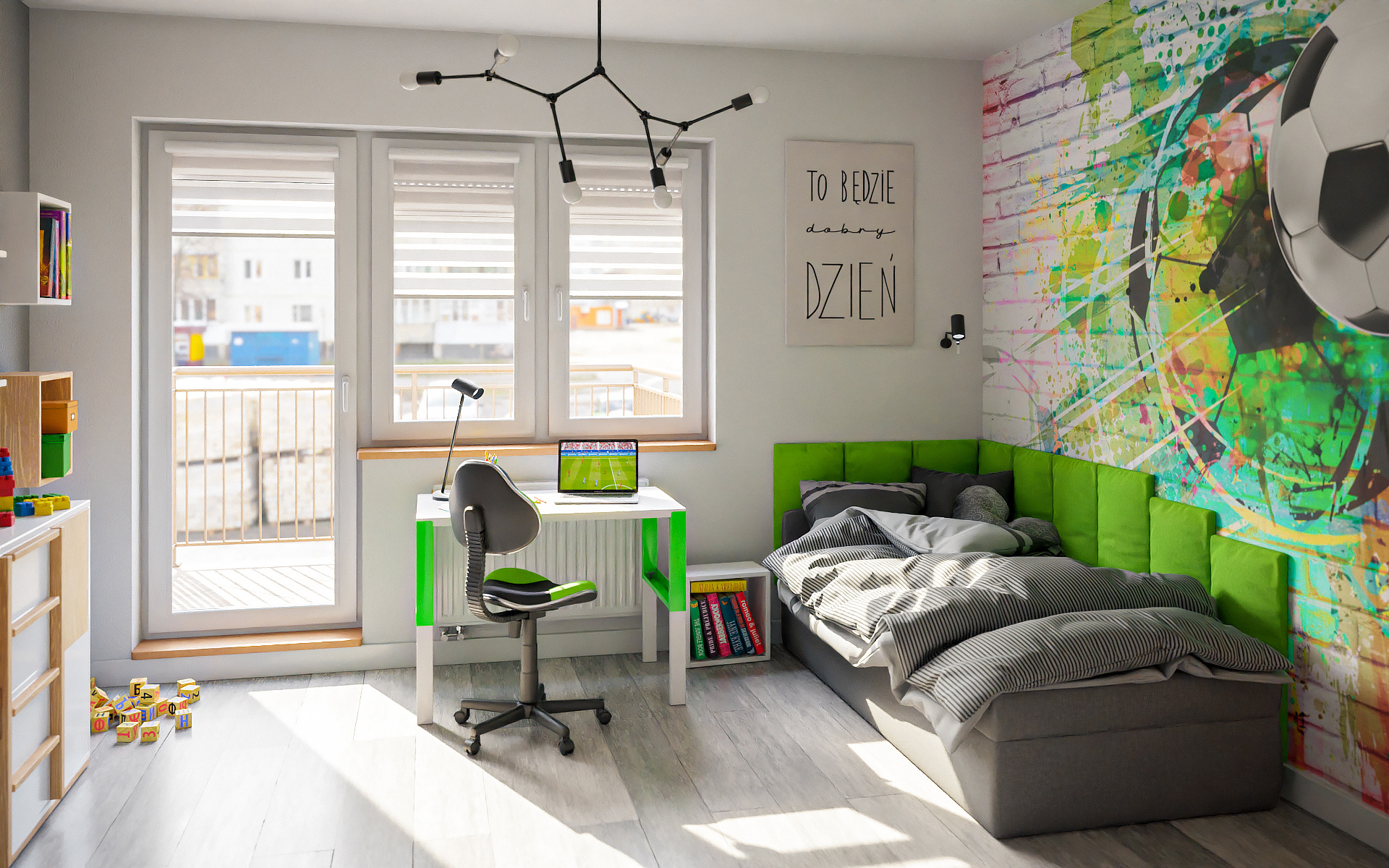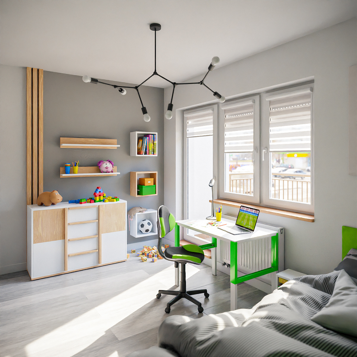 4 fotorealistyczne wizualizacje projektu wnętrz pokoju dziecięcego wykonane dla Lara Studio.